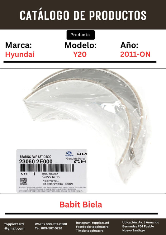 21020-2E000: Babit de Cigüeñal Y20 2011-15. K5 2011-18. Elentra 2011-18.