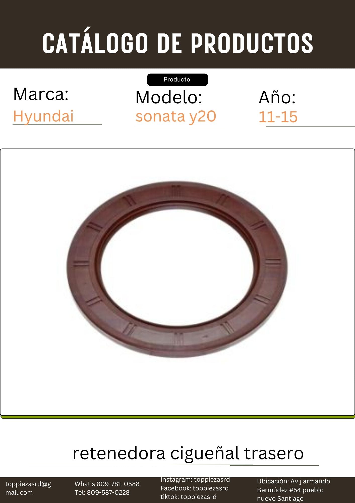 21443-2E000: Retenedora Cigueñal Trasero Sonata Y20 2011-15. K5 2011-18. New Rise 2018-20.