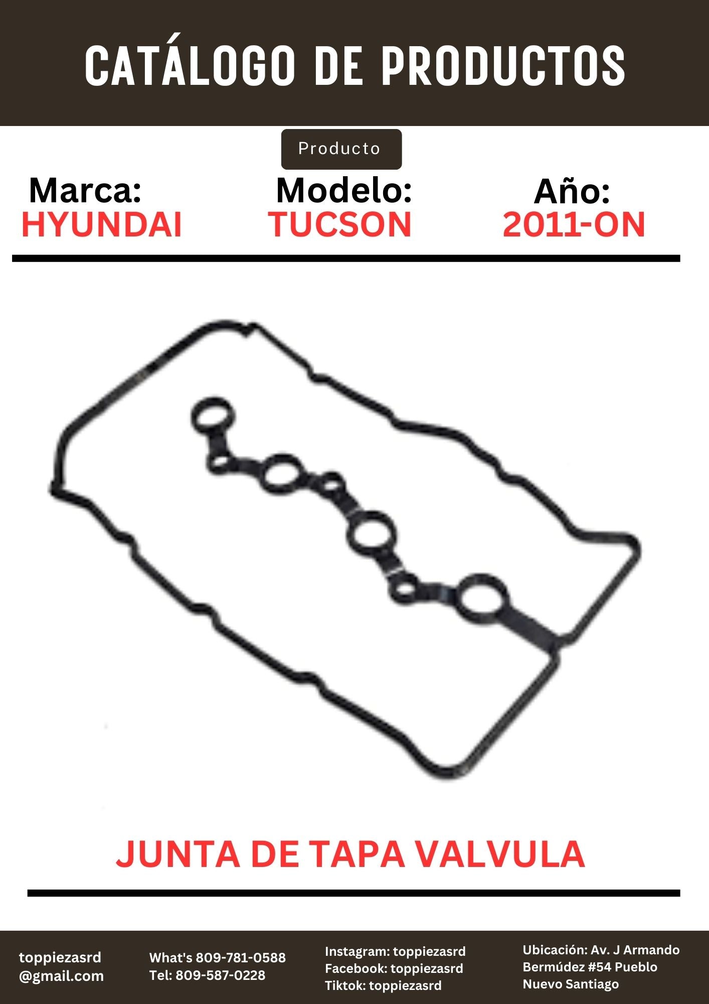 22441-2G100: Junta De Tapa Válvula Hyundai TUCSON IX35 SPORTAGE 2011-15.