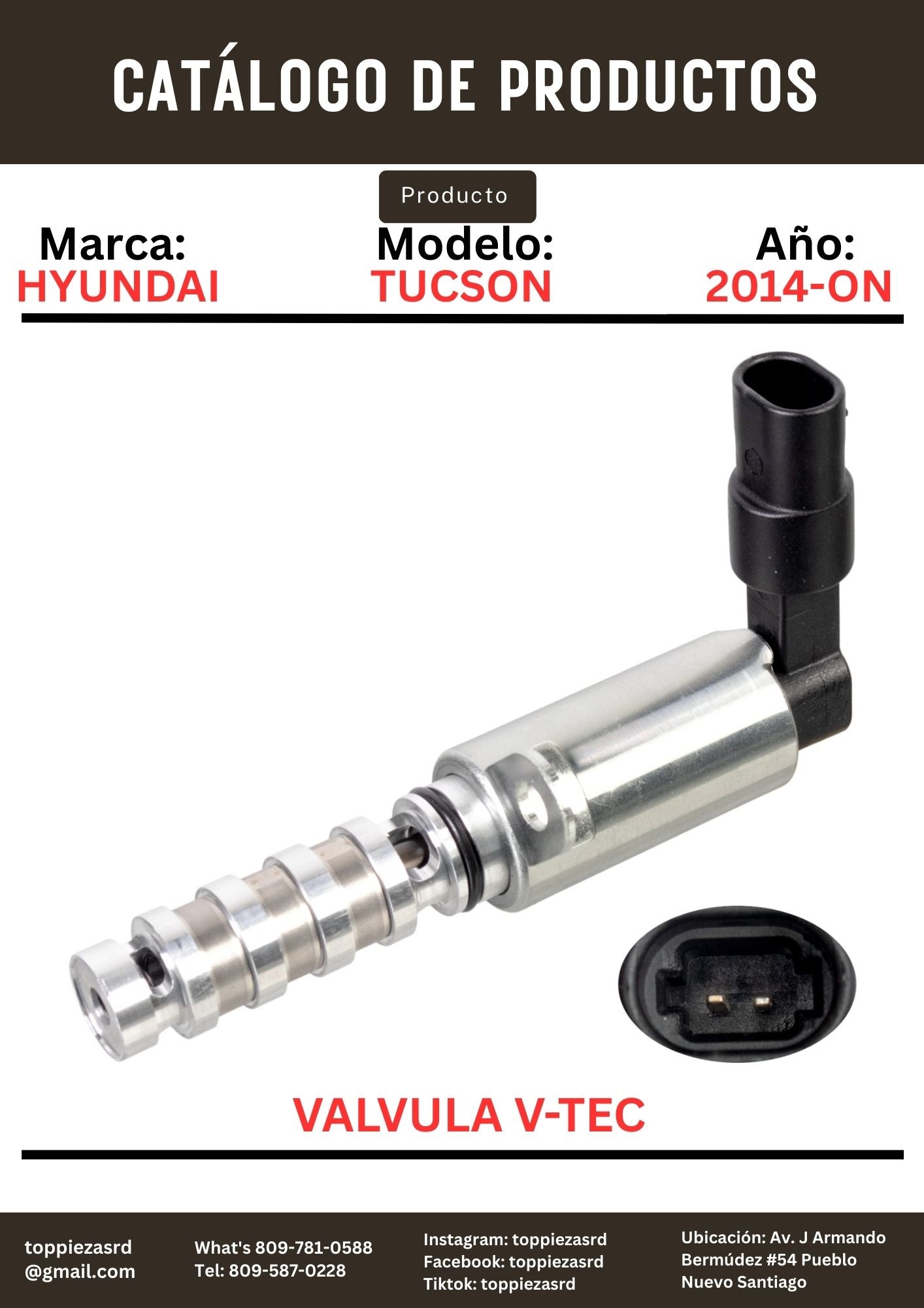 24375-2E100: Válvula V-TEC Control De Aceite ADM Hyundai TUCSON 2014-ON.