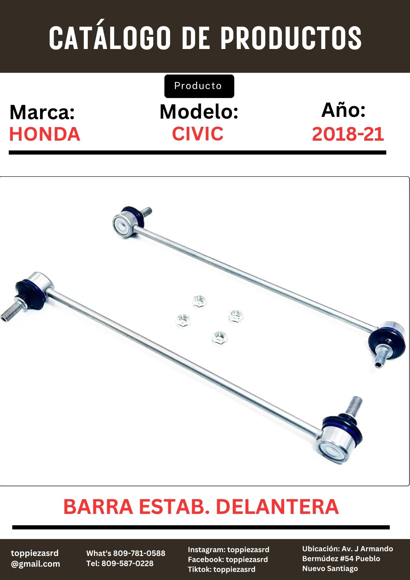 51320-TBA-A01: Barra Estab. Delantera Civic 2016-20. Accord 2018-21.