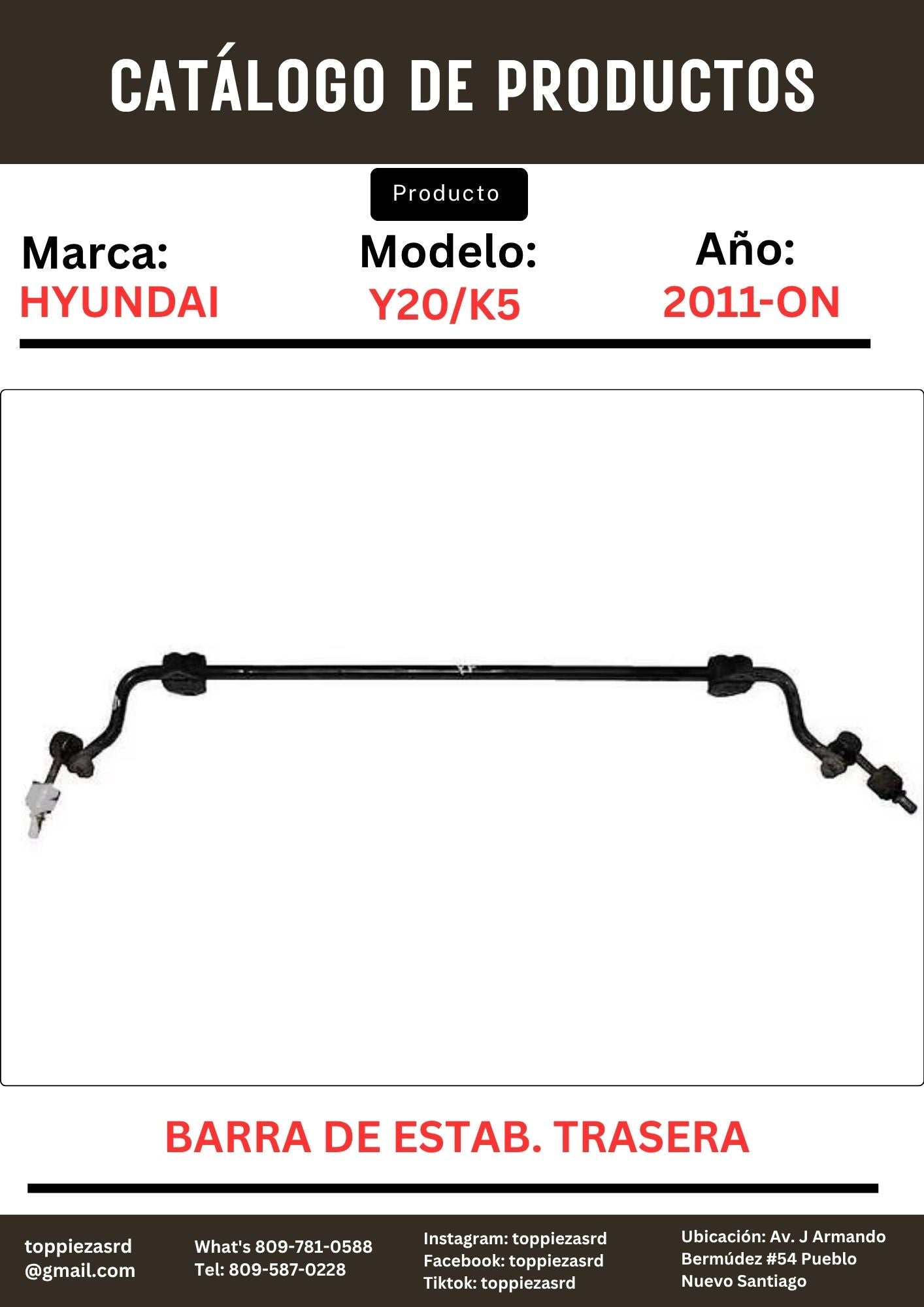 55510-3S000: Barra Estabilizadora Trasera Hyundai Sonata Y20 2011-ON. K5 2011-ON.